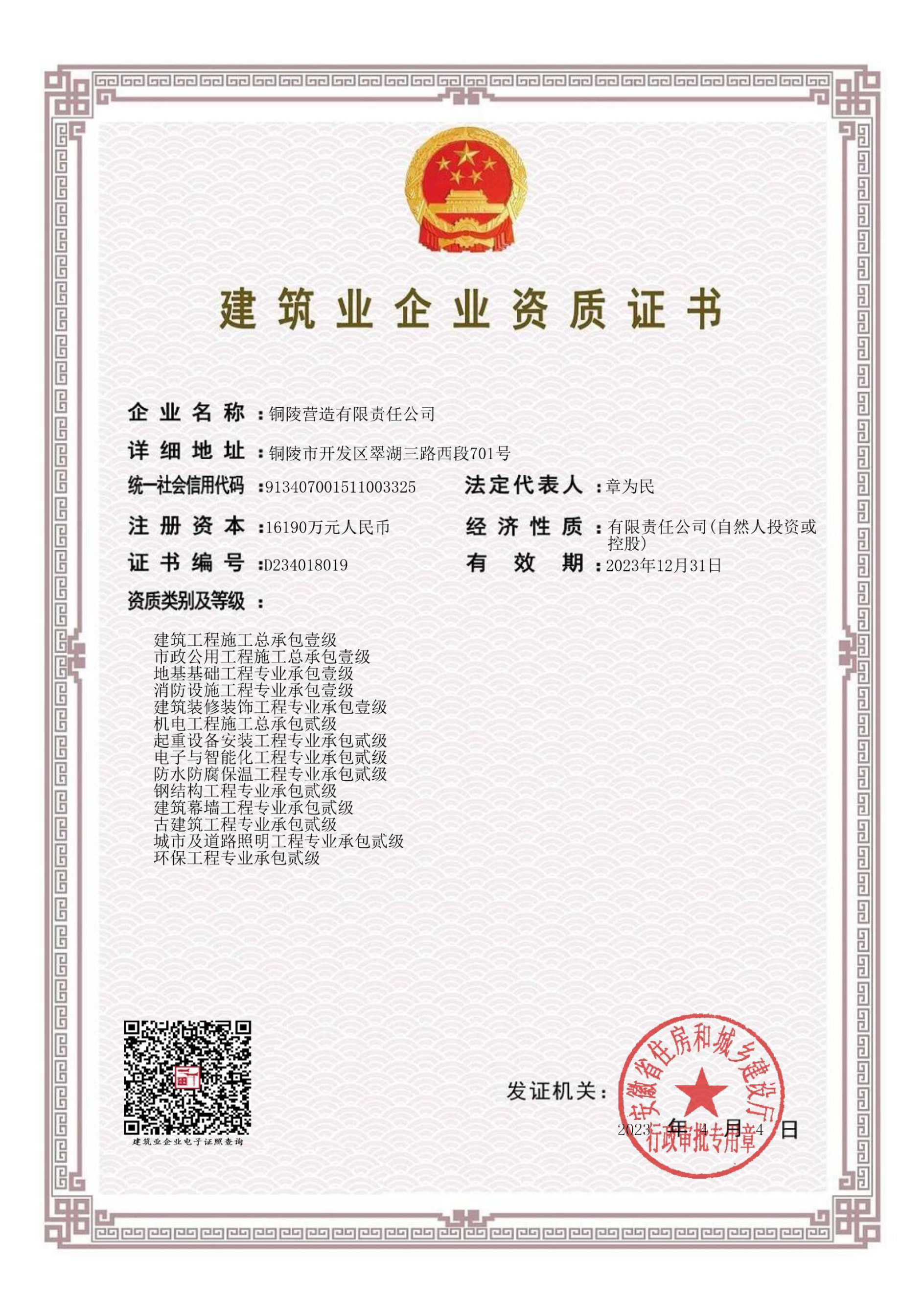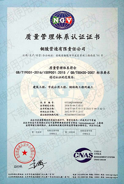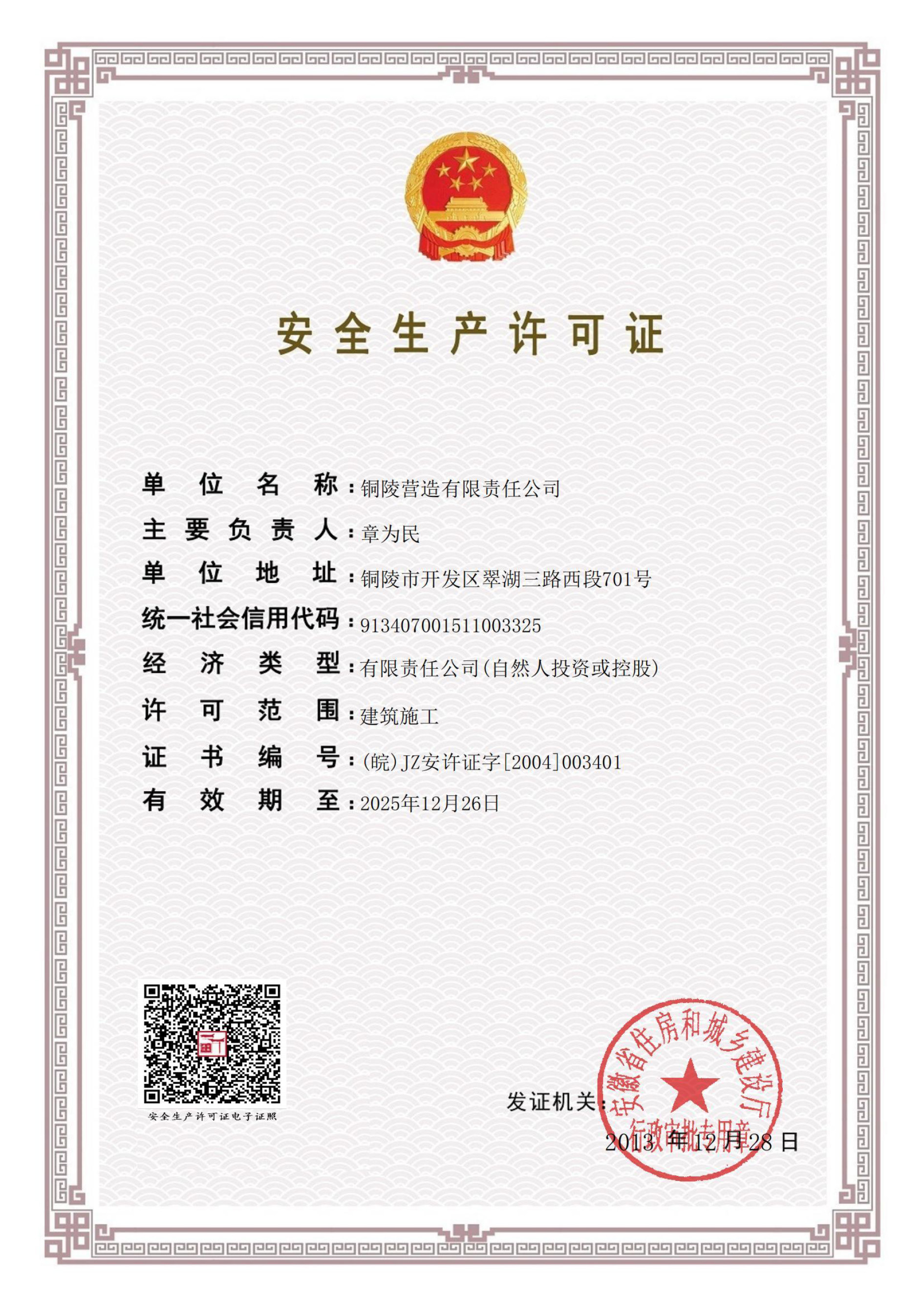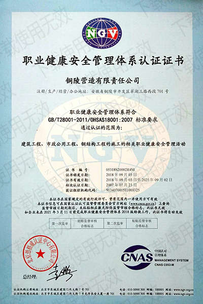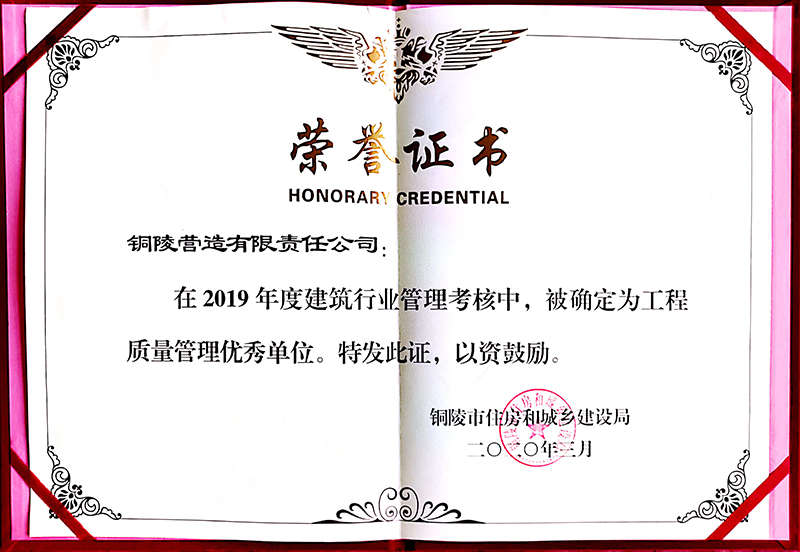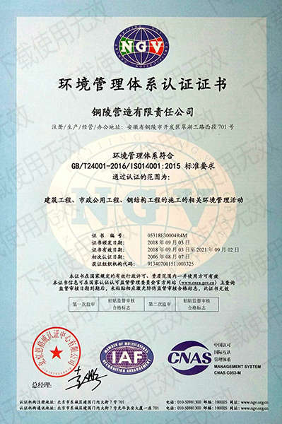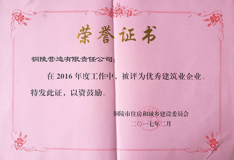 銅陵營造有限責(zé)任公司是國家住建部核準的房屋建筑總承包一級企業(yè)。2006年7月,企業(yè)二次改制為民營企業(yè),并更名為“銅陵營造有限責(zé)任公司”。目前,公司擁有房建施工總承包、市政公用工程總承包、鋼結(jié)構(gòu)專業(yè)工程承包、建筑裝修裝飾專業(yè)工程承包四項壹級資質(zhì),機電安裝、起重設(shè)備安裝、建筑幕墻三項貳級資質(zhì),地基與基礎(chǔ)一項叁級資質(zhì)。2008年通過北京恩格威ISO9001、ISO14001和OHSAS18001“三合一”體系認證。